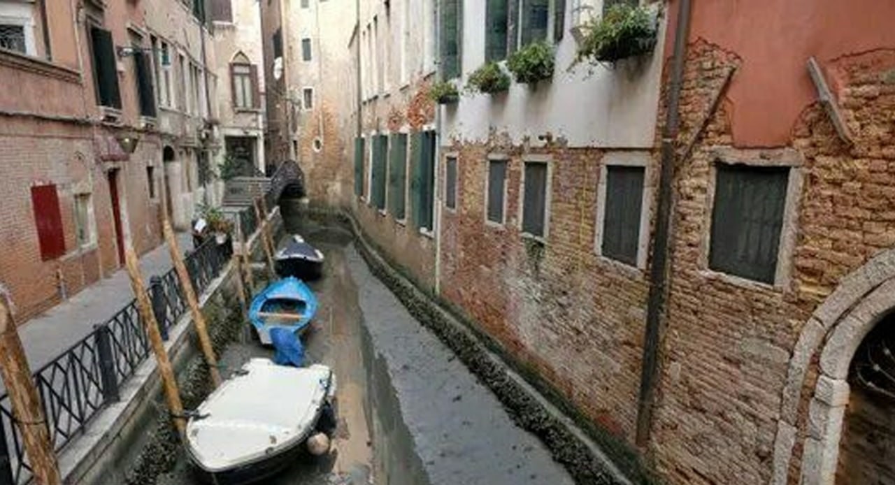 دابەزینی بەرچاوی ئاستی ئاو لە ڤێنێزیا ، هاتن و چوونی تاکسیگەلی ئاوی و ئۆتۆمبێل گەلی فریاکەوتنی لە هەندێک لە کەناڵە بەناوبانگەکانی ئەستەم کردووە و جێبەجێ ناکرێت .