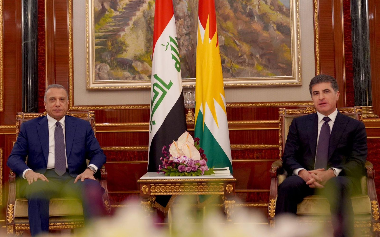 پێش نيوهڕۆى ئهمڕۆ دووشهممه 2022/10/3، نێچيرڤان بارزانى، سهرۆكى ههرێمى كوردستان، پێشوازى له مستهفا كازمى، سهرۆك وهزيرانى عێراقى فيدراڵى كرد.