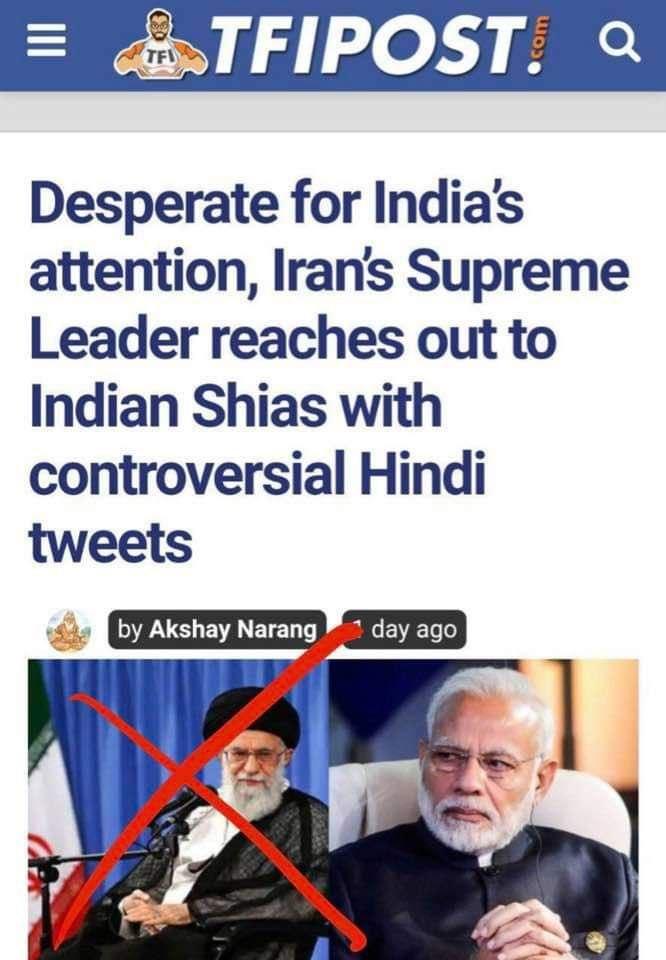 تویتەری هێندنی خامنەیی تەفرەقە و دوژمنایەتی مەزهەبی بە ئامانجی هۆشداری بە دێهلی نۆ بڵاو دەکاتەوە .
