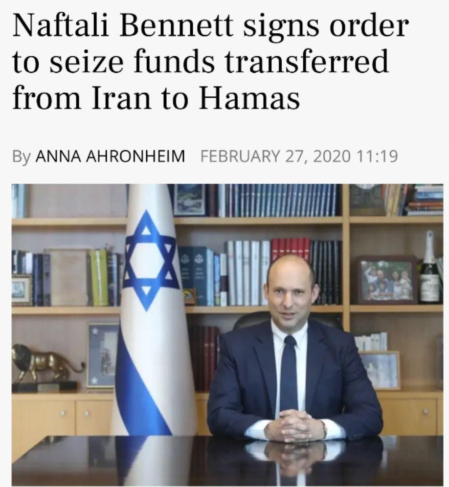 بە پێی هەواڵ و زانیارییەکان وەزیری بەرگری ئیسرائیل نەفتالی بێنت ، ئەمڕۆ پێنجشەممە لە بڕیارێکی گرینگ دا فەرمانی دەست بە سەردا گرتنی بڕی ٤ میلیارد دۆلار لە بوودجەی نێردراو لە لایەن کۆماری ئیسلامی ئێرانەوە بۆ پاڵپشتی کردن لە حەماس لە خاڵی سنووری غەززەی دەرکرد .