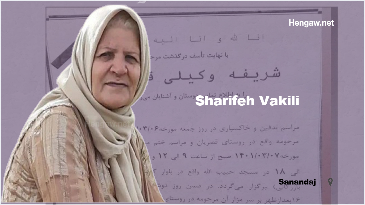 شەریفە وەکیلی دایکی ٨ منداڵ بووە و هەمان ڕۆژ بە هۆی سەختی برینەکانیەوە گیانی لەدەستداوە و تا ئێستا هۆکاری کوشتنەکەی ڕوون نیە.