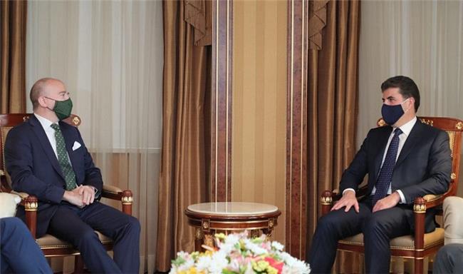 نێچیرڤان بارزانی سەرۆکى هەرێمى کوردستان پێشوازى لە باڵیۆزى دانیمارک دەکات