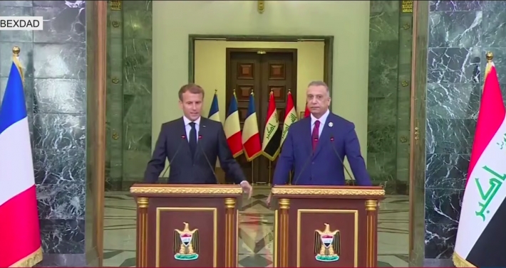 ئیمانوێڵ ماکرۆن دوای کۆبوونەوەی لەگەڵ مستەفا کازمی، سەرۆک وەزیرانی عێراق، لە کۆنگرەیەکی رۆژنامەوانیدا رایگەیاند: فەرەنسا جەخت لە سەقامگیری و سەروەریی عێراق و کاری بە یەکەوەیی لە شەڕی دژی رێکخراوی تیرۆریستی داعش، دەکاتەوە.