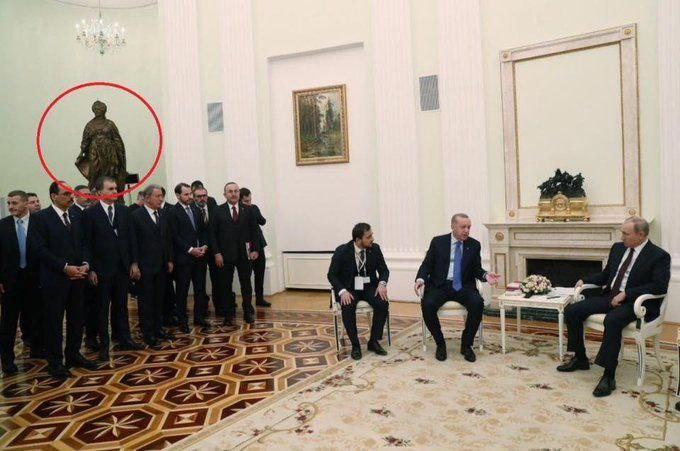 بە پێی زانیارییەکان لە کاتی دیداری پووتین و ئەردۆغان دا هەیکەلی کاترین ی دووهەم کە لە سەر شاندەکەی تورکیا نیشان دەدات دەکاتە دیاری ئەردۆغان
