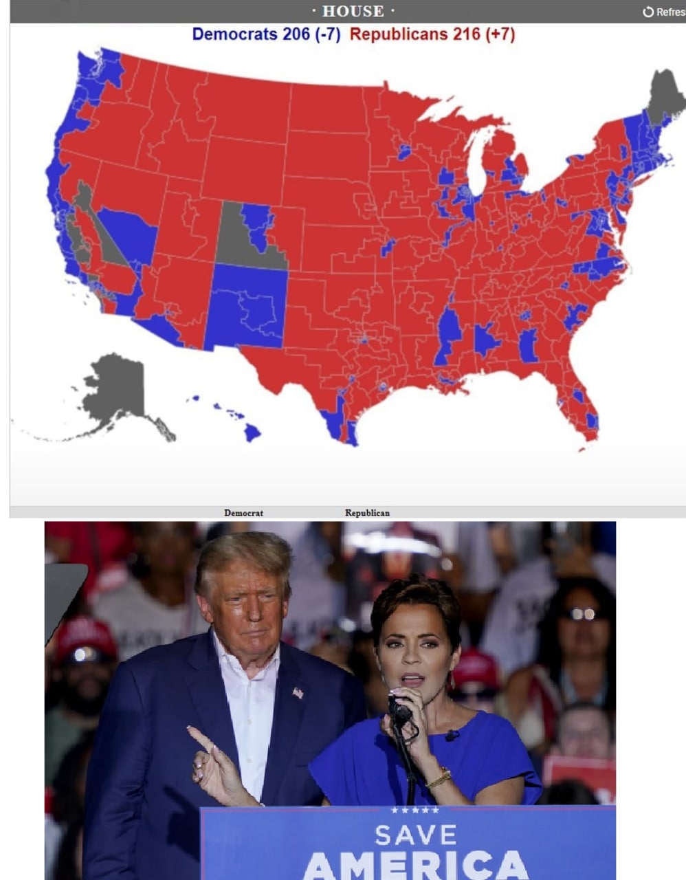 بە پێی دواهەمین دەرئەنجامی بڵاوکراوە لە هەڵبژاردنەکانی مەجلیسی نوێنەرانی ئەمریکا ، کۆماریخوازەکان ٢١٦ کورسی و دیمۆکراتەکانیش ٢٠٦ کورسی یان بە دەست هێناوە .