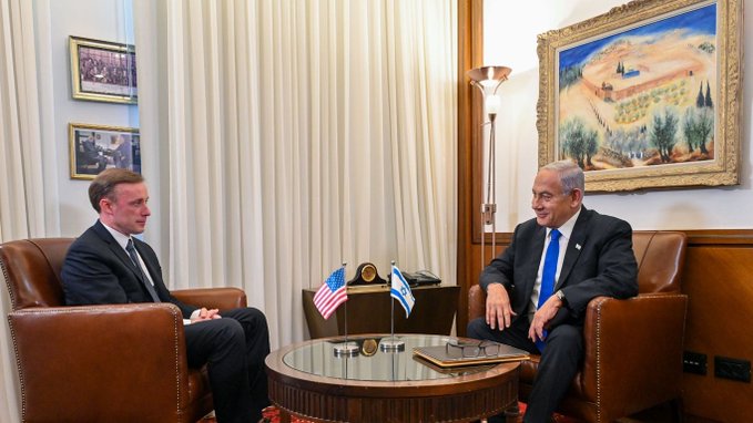 جەیک سۆلیڤان لە تەلئەڤیڤ لەگەڵ بێنیامین ناتانیاهوو سەرۆک وەزیرانی ئیسرائیل و یووئاڤ گاڵانت وەزیری بەرگری ئیسرائیل کۆبووەوە.