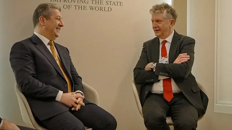 لە درێژهى دیدار و کۆبوونهوهکانیدا له داڤۆس، چوارشەممە، 21ـی کانوونی دووەمی 2026، مەسروور بارزانی سەرۆکی حکوومەتی هەرێمی کوردستان، لەگەڵ جاناتان پاوڵ، ڕاوێژکاری ئاسایشی نیشتمانی بهریتانیا کۆبووەوە.