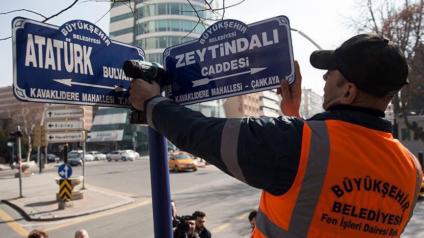 شارەوانی ئانکارا وەک کاردانەوە و دژایەتی لە بەرامبەر پاڵپشتی و پشتیوانییەکانی ئەمریکا بۆ کوردانی ڕۆژئاوا ناوی ئەو شەقامەی کە بە ناوی " باڵیۆزخانەی ئەمریکا " یە گۆری بە چڵی زەیتوون