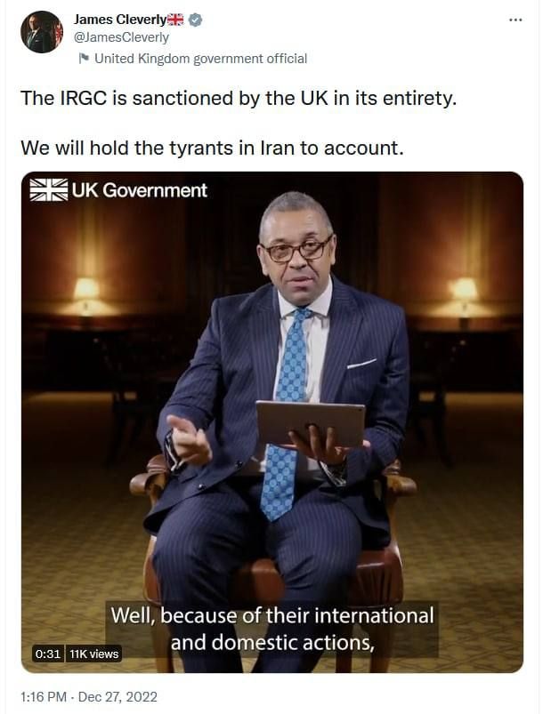 پەیامی کورد ... جێمز کلۆرلی، وەزیری دەرەوەی بەریتانیا : سوپای پاسداران بە تەواوی لەلایەن کۆماری ئیسلامییەوە دەستى بەسەردا گیراوە