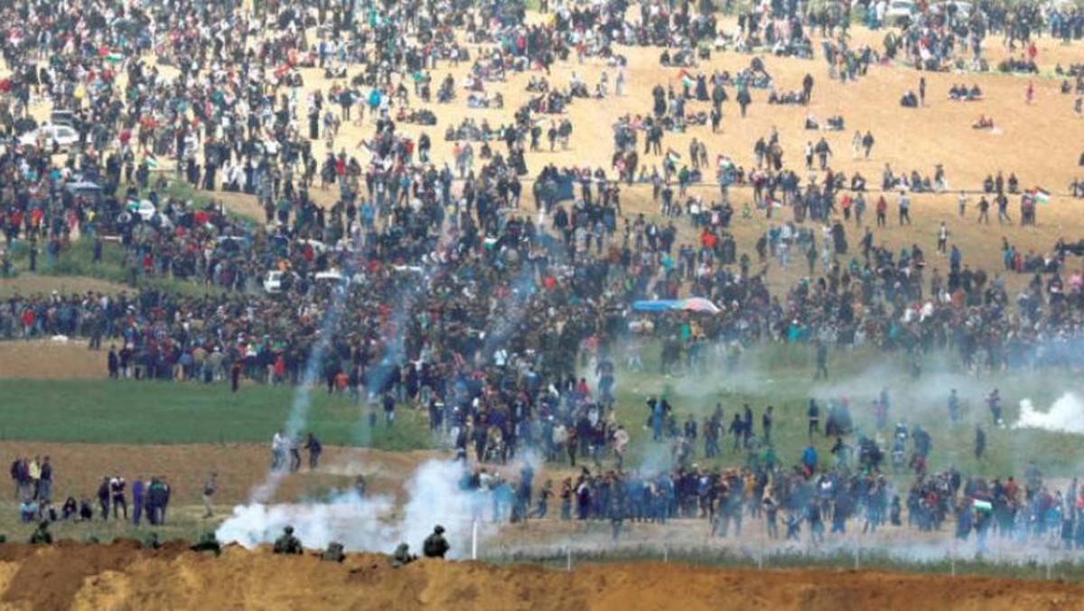 بەهۆی شەڕ و پێکدادانی خۆپیشاندەرە فەڵەستینییەکانی کەرتی غەزە لەگەڵ هێزەکانی ئیسرائیل، زیاتر لە (٥٥) کەس گیانیان لەدەستداو هەزاران دیکەش برینداربوون.