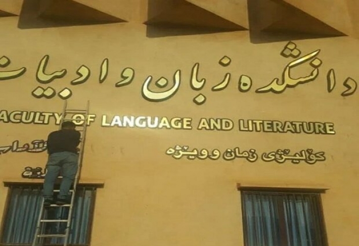 پەیامی کورد … نوسراوە كوردییەكانی سەر دەروازەكانی زانكۆی كوردستان دانرایەوە