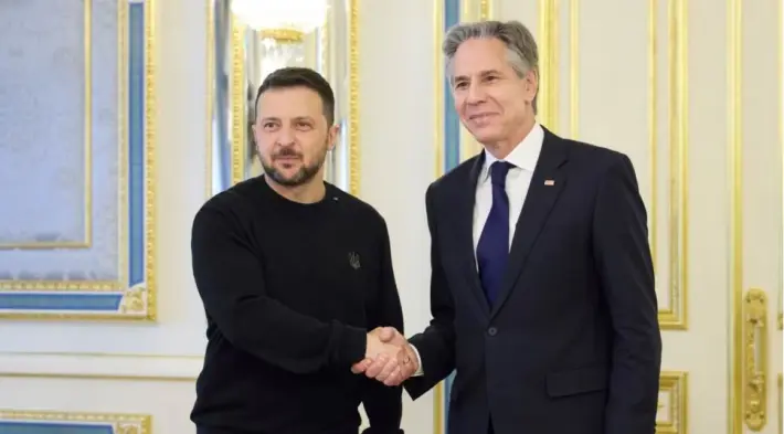 بلینکن لە ماوەی سەردانەکەیدا لەگەڵ سەرۆک وەزیری ئۆکرانیا دینیس شمیهاڵ و وەزیری دەرەوەی ئۆکرانیا دمیترۆ کولێباشدا کۆدەبێتەوە و وتارێک لە کیێڤ پێشکەش دەکات.