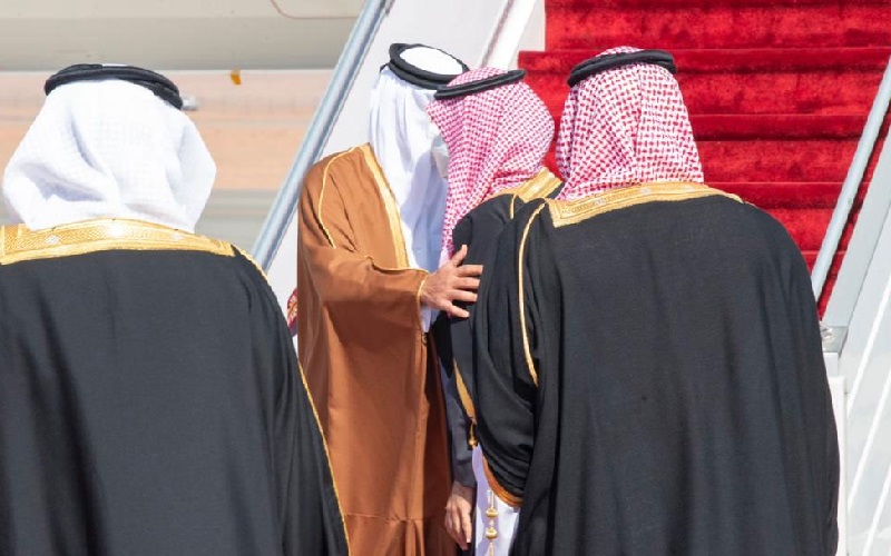 بە پێی ئەم راپۆرتە ئەمیری قەتەر لە کاتی گەیشتنی بە العلا لە لایەن شازادە موحەمەد بن سەلمان ئالی سەعوود ، وەلیعەهدی عەرەبستان ەوە پێشوازی لێکرا و هەر دوو لایەن سەرەڕای بەکار هێنانی ماسک لە ڕاستای پاراستنی یاساکانی خۆپارێزی ڤیرووسی کۆرۆنا یەکتریان لە ئامێز گرت .