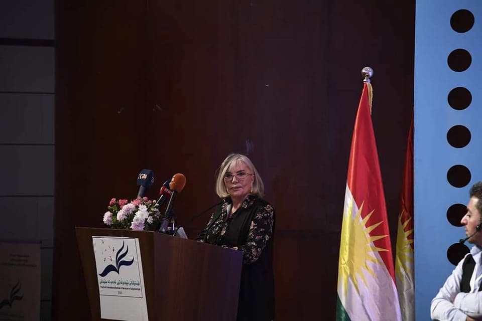 لە میانەی بەشداریكردنی دا لە دووەمین ڕۆژی فێستیڤاڵی نێودەوڵەتی ئەدەبی سلێمانی هاوسەری سینەماكاری كۆچكردووی كورد " یەڵماز گونەی " ڕایدەگەێنێت: یەڵماز گونەی بە فیلمەکانی ئێش و ئازارەکانی کوردی بە دونیا ناساند.