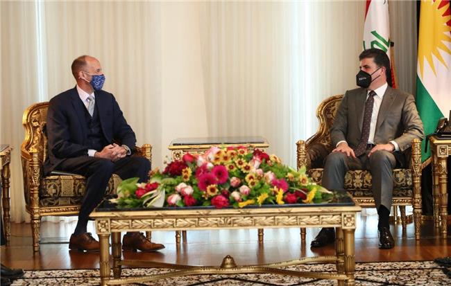 نیوهڕۆی ئهمڕۆ پێنجشهممه 1/4/2021 نێچیرڤان بارزانی، سهرۆكی ههرێمی كوردستان پێشوزای له ژەنەرال جۆن تایگەرت، گەورە ڕاوێژکاری سهربازی باڵیۆزخانهی ئەمریکا لە بهغدا و شاندێكی یاوهری كرد.