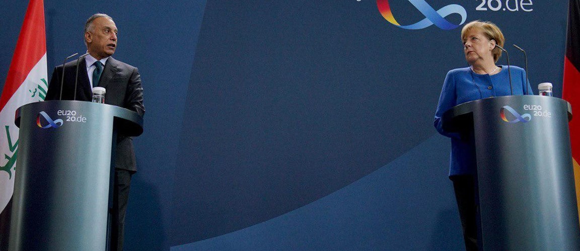 له كۆنگرهیهكی ڕۆژنامەوانیدا لهگهڵ ئهنگێلا مێركل ڕاوێژكاری ئهڵمانیا له بهرلین، موستهفا كازمی ڕایگهیاند:"هاتووم بۆ بهرلین بۆ دووپاتكردنهوهی پابهندبوونهكانی عێراق به زیادكردنی پهیوهندییهكان و هاوبهشی بهردهوام لهگهڵ ئاڵمانیا، بهناوی حكوومهت و گهلی عێراقهوه، دهستخۆشییهكی گهوره بۆ ئاڵمانیا دهكهم بهمهبهستی هاوكاریكردنی عێراق بۆ دژه تیرۆر".
