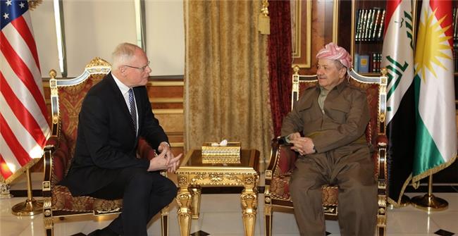 پەیامی کورد ... ئێوارەی دوێنێ ڕۆژی چوارشەممە 20ـی 2ـی 2019 لە سەلاحەددین سەرۆك مەسعود بارزانی پێشوازی لە شاندێكی حكوومەتی ئەمریكا كرد كە پێكهاتبوو لە جێمز جێفری نوێنەری نوێی سەرۆكی ئەمریكا بۆ هاوپەیمانیەتی نێودەوڵەتی شەڕی دژی داعش و سەرۆكی شاندەكە و جۆڵ ڕایبێڕن جێگری یاریدەدەری وەزیری دەرەوەی ئەمریكا بۆ كاروباری ڕۆژهەڵاتی ناوەڕاست و كونسوڵی گشتی ئەمریكا لە هەولێر بە وەكالەت و ئەندامانی تیمی ئەمریكی تایبەت بە سووریا.