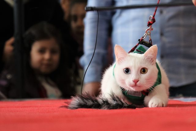 Biri mavi diğeri sarı renk gözleri, kar beyaz tüyleri ve asil duruşlarıyla dikkati çeken Van kedilerinin katıldığı yarışmaya vatandaşlar ile kente gelen turistler yoğun ilgi gösterdi.