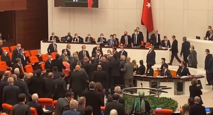 Erkan Aydın, "Aynen iade ediyorum" karşılığını verdi. Türkiye Meclis Başkanvekili Süreyya Sadi Bilgiç, Bakan Soylu'yu, "Sayın Bakan, bu şekilde müzakereleri götürmemiz mümkün değil" diyerek uyardı. Bu sırada AKP ve CHP’li milletvekilleri arasında yumruklu kavga çıktı. Birleşime 10 dakika ara verildi.