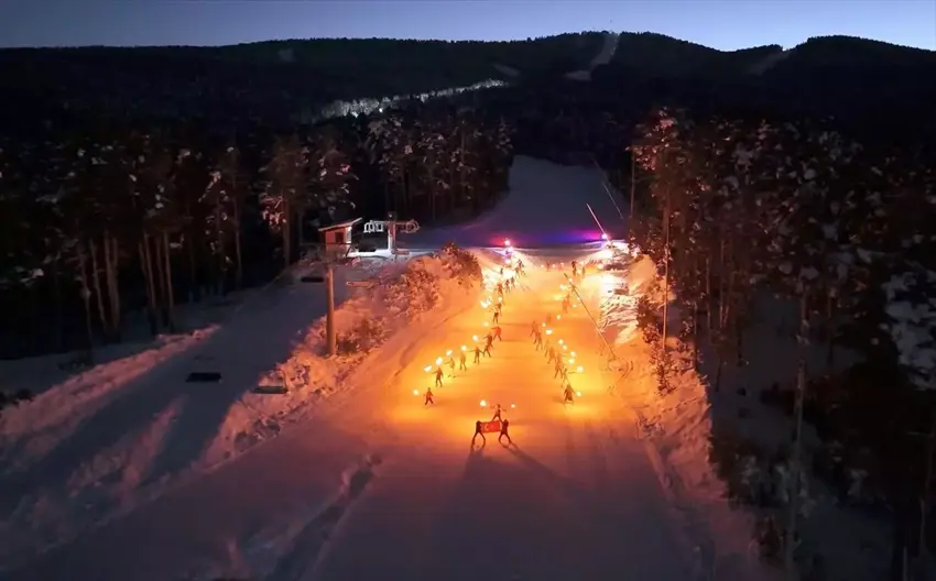 Qaliniya berfê li Sariqamîşê gihaye 70 cm yan û geştiyar bi şematekê û snowbardê kêf dikin. Di merasima vekirina demsala şematekê de, xwepêşandana şematekê bi meşale hat kirin, govendê girtin û kêf kirin.
