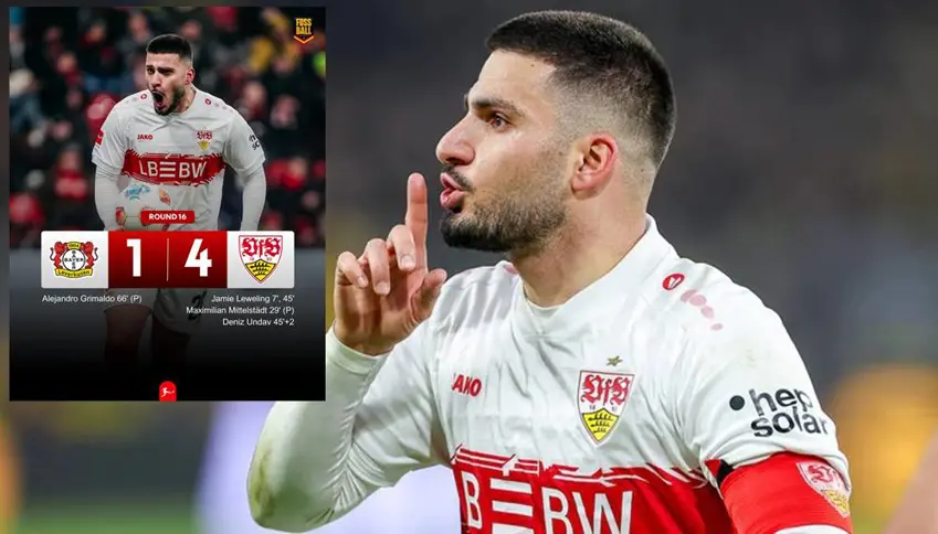 PeyamaKurd- Di hefteya 16emîn a Bundesligaya Almanyayê de, VfB Stuttgart li deplasmanê bi serkeftineke dîrokî ya 4-1 Bayer Leverkusen têk bir. Lîstikvanê Kurd Denîz Undav, bi lîstika xwe ya bêhempa, gola xwe û du asîstên xwe ve bû stêrka maçê û li BayArenayê tofan li serê Leverkusenê rakir. Bi vê encamê, Stuttgartê ne tenê sê puan girtin, lê di heman demê de piştî 7 salan cara yekem karîbû li hemberî Leverkusenê serkeftinê bi dest bixe û rêzefîlma wan a bêşansiyê bi dawî bike.