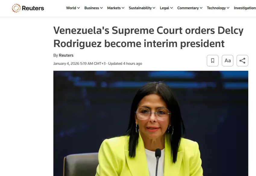 ئاژانسی ڕۆیتەرز بڵاویکردەوە، دادگای باڵای دەستووری ڤەنزۆئێللا بڕیاریدا، دیلسی ڕۆدریگێز، جێگری سەرۆکی ڤەنزۆئێللا نیکۆلاس مادۆرۆ، ڕۆڵی سەرۆکی کاتی ڤەنزۆئێللا بگرێتە ئەستۆ.