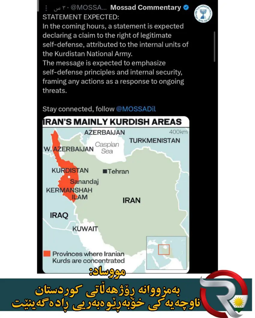 • پەیجی فەرمی مووساد لە تۆڕی ئێکس و ڕاگەیاندنی هەواڵی گرینگ
