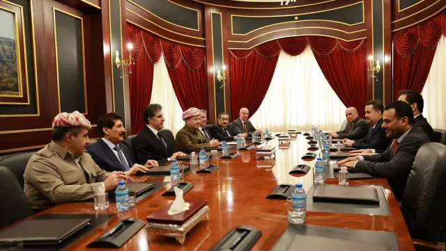 دووشەممە 2ـی شوباتی 2026 لە پیرمام سەرۆك مەسعوود بارزانی لەگەڵ شاندێكی باڵای چوارچێوەی هەماهەنگی كۆبۆوە كە پێكهاتبوو لە محەمەد شیاع سوودانی سەرۆكی هاوپەیمانی ئاوەدانكردنەوە و گەشەپێدان و هادی عامری سكرتێری گشتی ڕێكخراوی بەدر و موحسن مەندەلاوی سەرۆكی هاوپەیمانی ئەساس و عەباس ڕازی سكرتێری گشتی چوارچێوەی هەماهەنگی.
