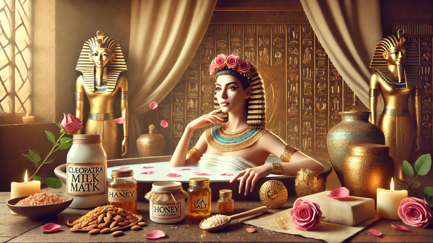 Kleopatra’nın en bilinen güzellik sırrı, özellikle cildini canlandırmak ve parlatmak için sık sık uyguladığı süt banyoları. Sütün içindeki laktik asit, ölü hücrelerin atılmasına ve cildin yenilenmesine yardımcı oluyor. Efsaneye göre Kleopatra, süt banyosuyla cildine pürüzsüz ve parlak bir görünüm kazandırıyordu. Bugün ise süt, birçok cilt bakım ürününde doğal bir içerik olarak kullanılıyor.
